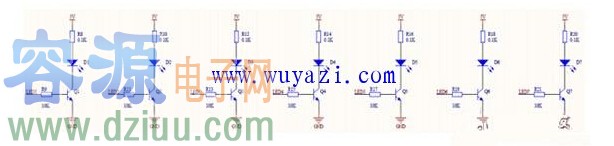 LED 驅動部分電路如圖 5, 由于每一個LED 的電流在10mA 左右,24 個LED 如果同時亮就有240mA,無法通過MCU IO 口直接驅動,在每個LED 上加一個三極管以及限流電阻,實現24路LED 的控制。