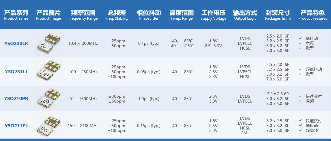 國產晶振原廠揚興科技提供全面的差分晶振產品系列,為視頻處理器提供低抖動、低相噪、高精度的時鐘解決方案。針對視頻處理器應用,主推產品系列及特色優(yōu)勢如下: