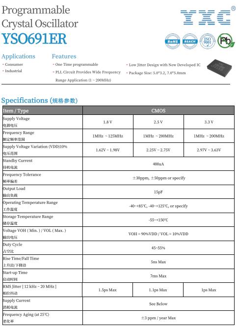 高頻靈活定制-存儲與計算 可編程差分振蕩器YSO210PR應