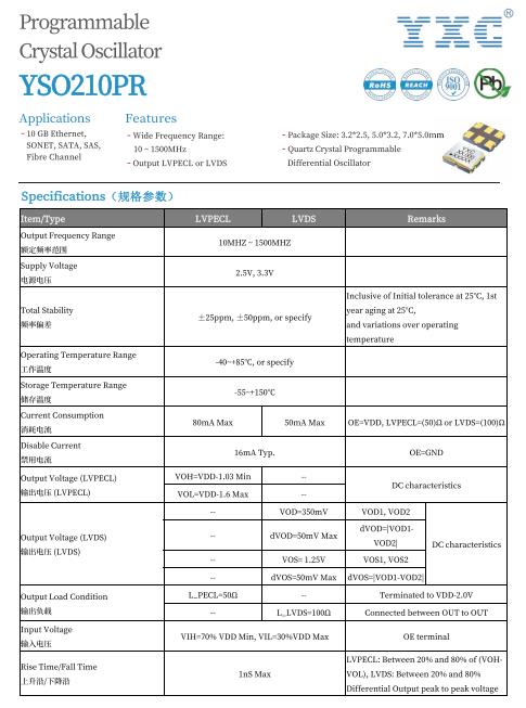 YXC晶振YSO210PR系列,頻率為50MHz,總頻差±50PPM,以下為YSO210PR系列規(guī)格書。