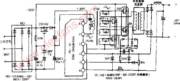 本文提供大功率開關(guān)電源電路圖,元器件型號(hào)已標(biāo)記在電路圖中,有
