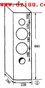 :(1)后箱板上要開(kāi)二個(gè)孔,用于安裝面板和散熱器,開(kāi)孔尺寸比面板和散熱器每邊各縮小1cm,便于固定螺絲。(2)箱內(nèi)放置4根支撐木方,用于放置變壓器。變壓器放置在與揚(yáng)聲器保持