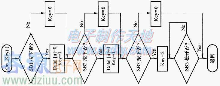 輸入密碼由按鍵掃描函數完成,按鍵掃描函數的流程圖見下圖。