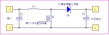 HT7179內(nèi)部集成15A的MOS開關(guān)管,外圍除了必須的電感之外,關(guān)鍵器件就是肖特基二極管。原理上是一種常見的開關(guān)直流boost升壓DC-DC電路,它通過開關(guān)管導(dǎo)通和關(guān)斷來控制電感容-源-電-子-網(wǎng)-為你提供技術(shù)支持