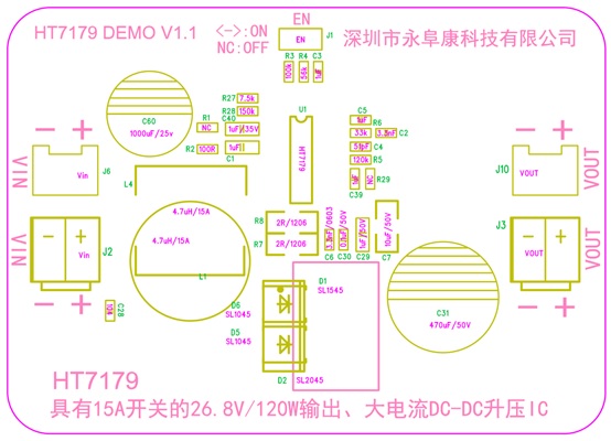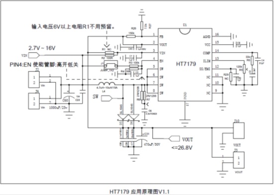 HT7179 12V升24V內置MOS大電流升壓IC解決方案