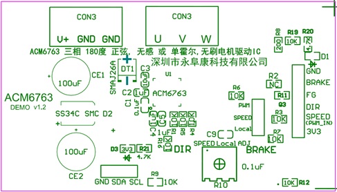 深圳市永阜康科技有限公司現在大力推廣支持3霍爾應用全集成三相直流無刷(BLDC)電機ASIC-ACM6755.該芯片工作電壓5V-28V,相電流4.8A,集成算法+預驅+MOS,QFN-28封裝。無需編寫任何應用軟件,只需通過上位機軟件對芯片的參數進行配置,從而適應不同的電機參數和性能需求。高集成度以及精簡外圍特別適用于高功率密度、小尺寸、靜音要求高的三相無刷電機驅動器應用場景。