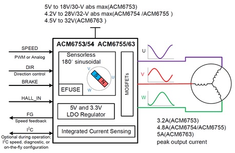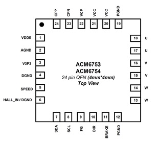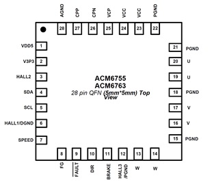 ACM6755 支持3霍爾應用的全集成三相直流無刷電機驅動