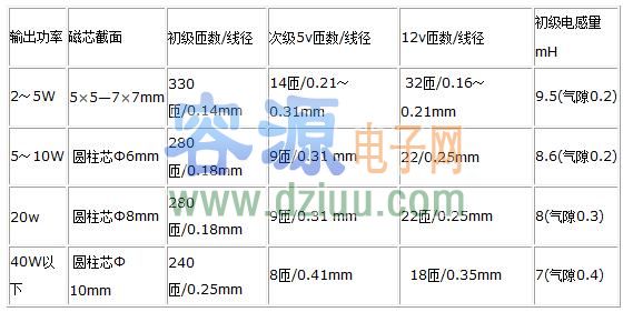 。即使是估算也涉及磁芯材料,結構的影響,限于目前市場產(chǎn)品參數(shù)的離散性,業(yè)余者也難以確定,此處只列出部分計算結果供參考。小功率開關電源脈沖變壓器制作參數(shù)(繞組功能參考附圖)如附表