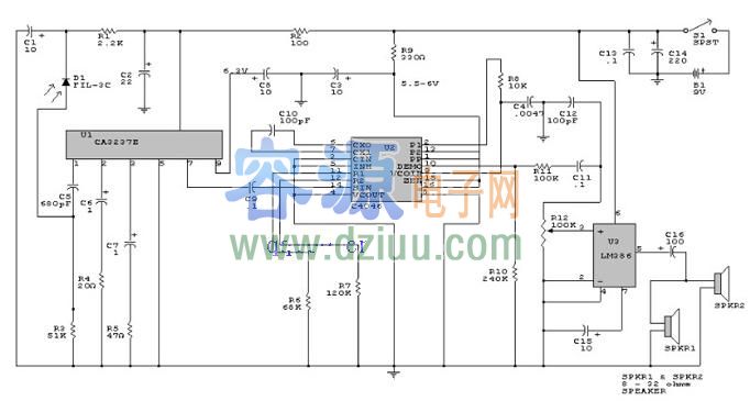 音響電路原理圖 <<版權(quán)聲明:本文由容源電子網(wǎng)(www_dziuu_com)整理提供,部分內(nèi)容來源于網(wǎng)絡(luò),如有侵犯到你的權(quán)利請與我們聯(lián)系更正。》