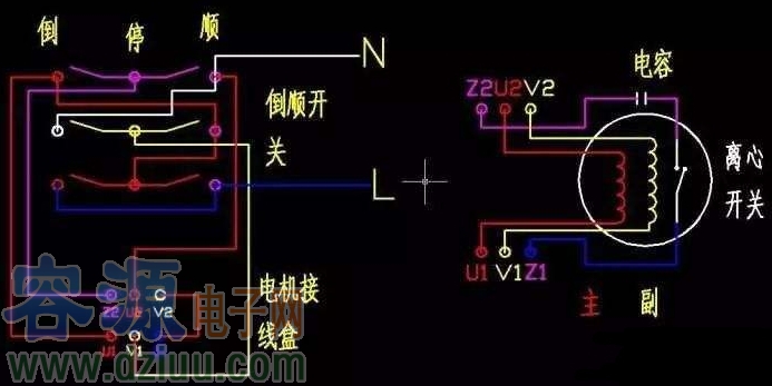 通過正反轉(zhuǎn)原理圖可以看出,只要改變單相電機電容兩端的接線方式就能改變電機的轉(zhuǎn)向,其實很簡單。