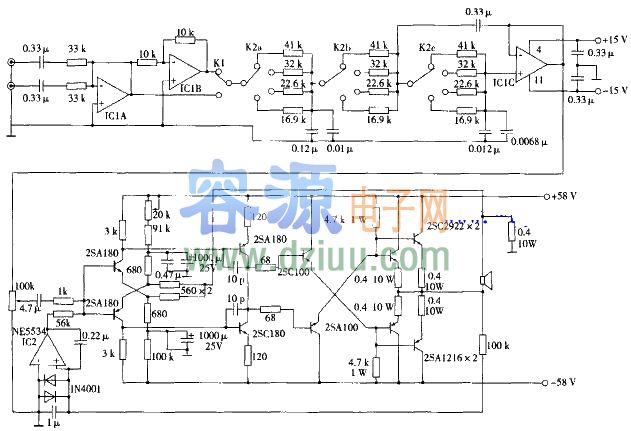 重低音音箱用的主動(dòng)伺服式功率放大器電路圖