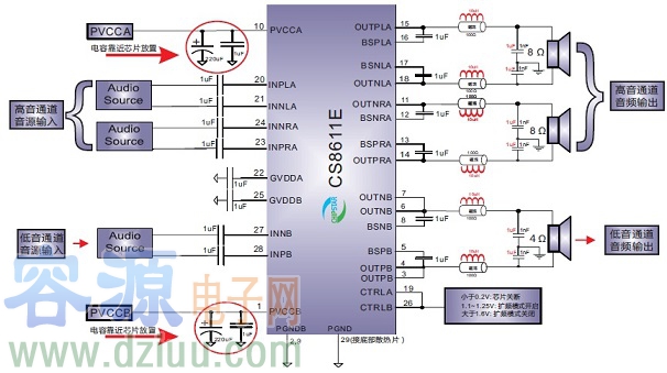 16.0V以下電壓可以驅動4Ω低音喇叭和2個8Ω低音喇叭
