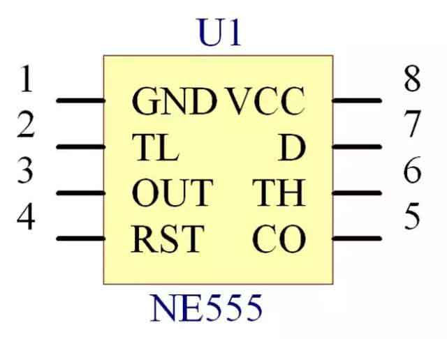 8腳:外接電源VCC,雙極型時(shí)基電路VCC的范圍是4.5 -16V,CMOS型時(shí)基電路VCC的范圍為3-18V,一般用5V。