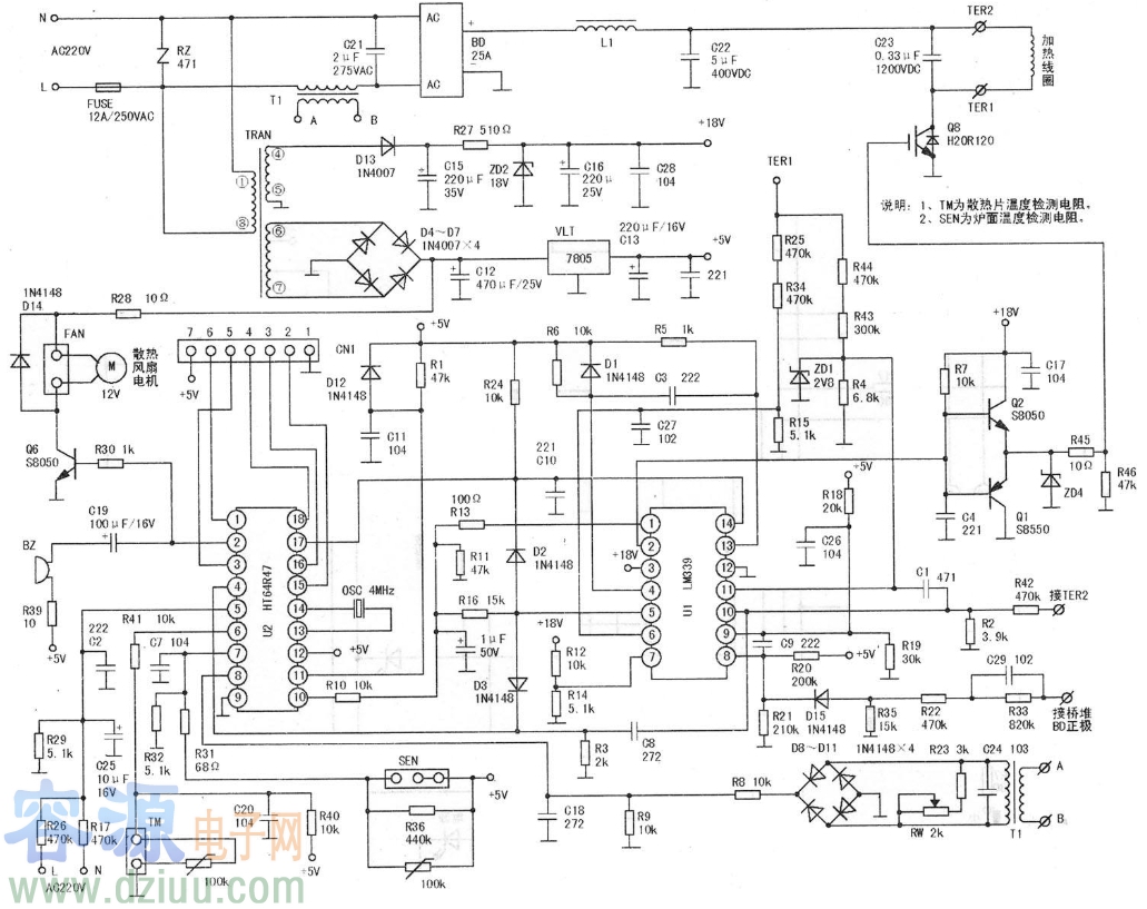 電磁爐的完整電路圖