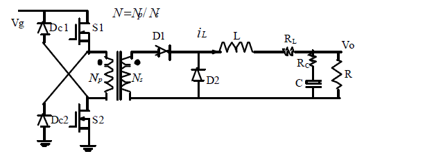 (1):二極管去磁雙正激變換器的電路圖: