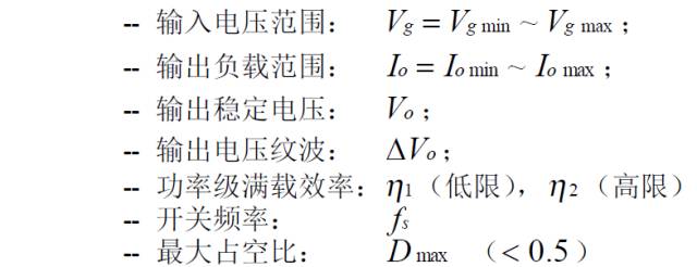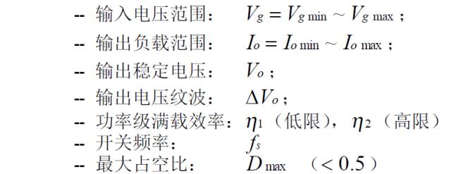 (2):三繞組去磁正激變換器的主要穩(wěn)態(tài)規(guī)格: