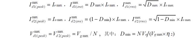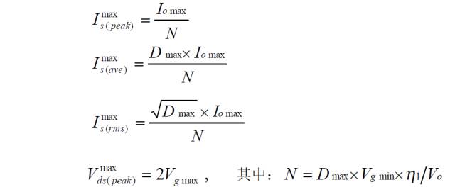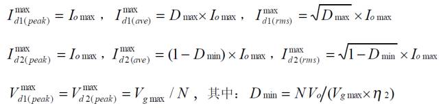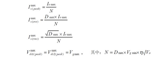 二極管去磁雙正激變換器的功率器件設(shè)計公式![]()