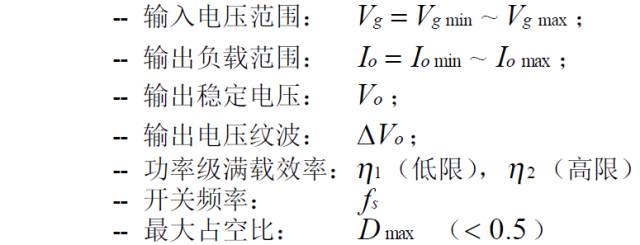 (2):對(duì)稱驅(qū)動(dòng)推挽變換器的主要穩(wěn)態(tài)規(guī)格: