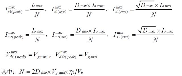 對(duì)稱驅(qū)動(dòng)推挽變換器的功率器件設(shè)計(jì)公式![]()