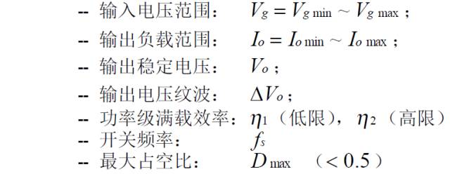 (2):對(duì)稱驅(qū)動(dòng)全橋變換器的主要穩(wěn)態(tài)規(guī)格: