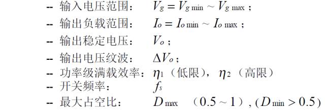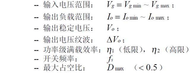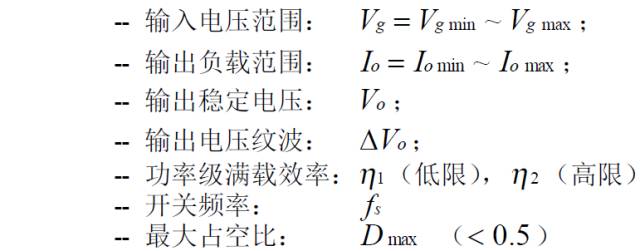 ( 2):對稱驅動推挽Boost 變換器的主要穩態規格: