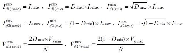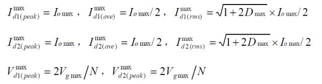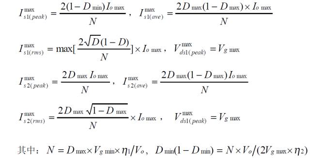 對稱驅動推挽Boost 變換器的功率器件設計公式![]()