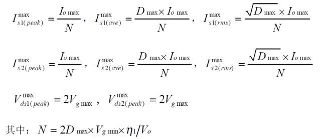 對稱驅動推挽正激變換器的功率器件設計公式![]()